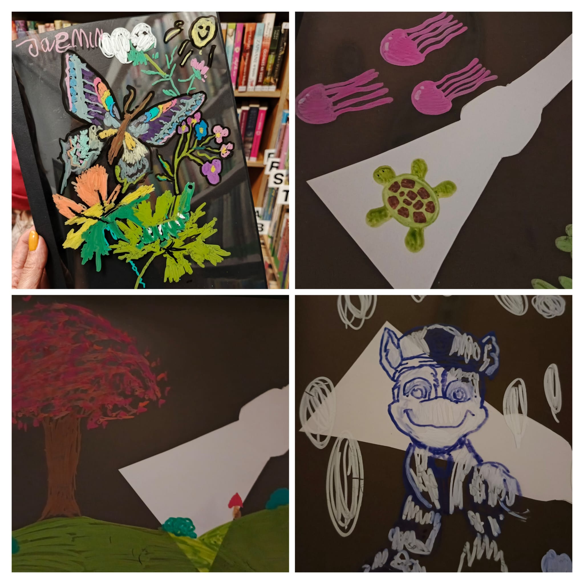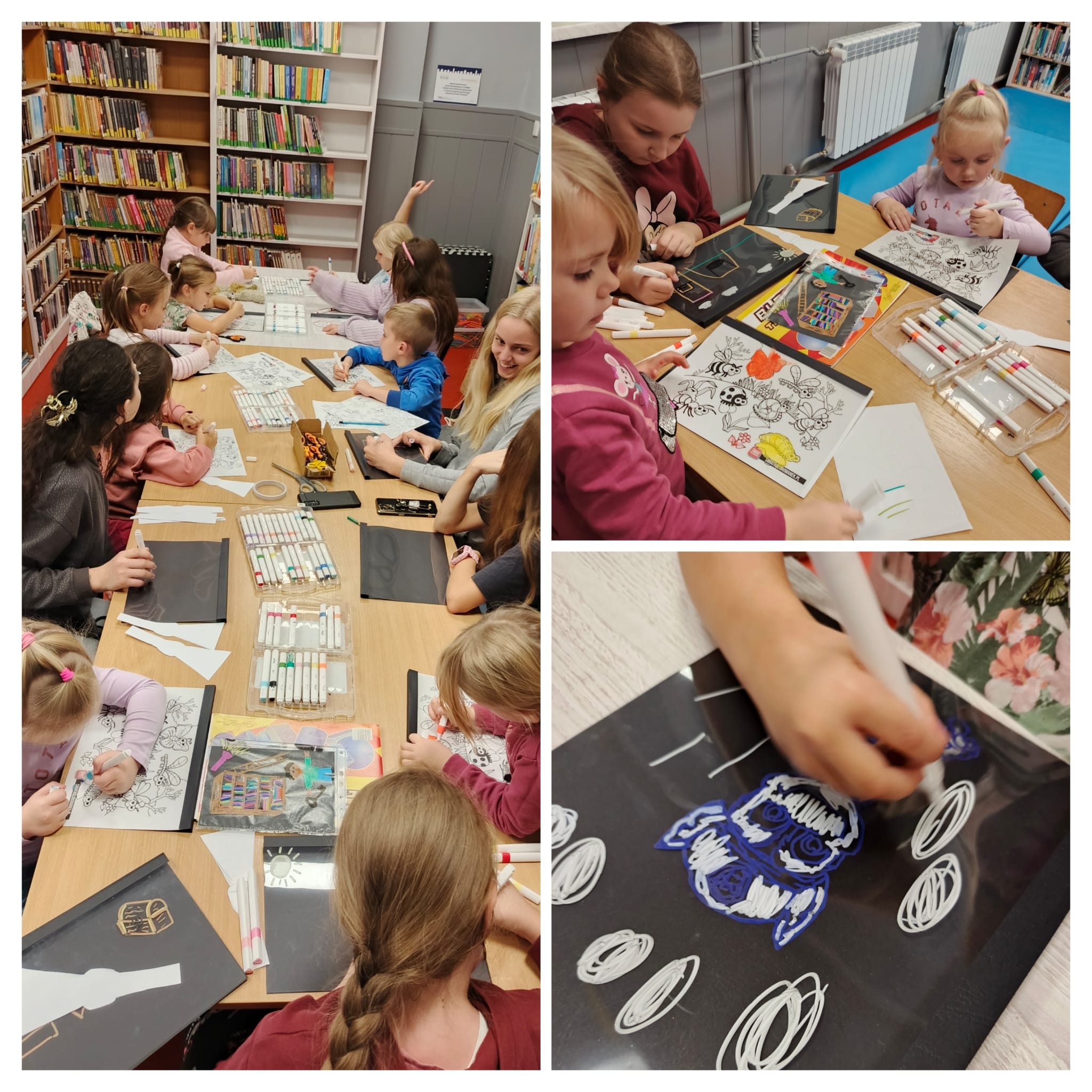 ✨W bibliotece w Łagiewnikach Małych w ramach 🌜Nocy Bibliotek dzieci miały okazję uczestniczyć w wyjątkowych zajęciach. Najpierw tworzyły nocne🌚🌌 obrazy, oddając się kreatywności i plastycznej zabawie.